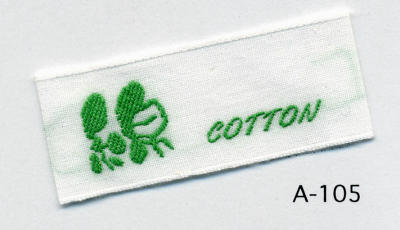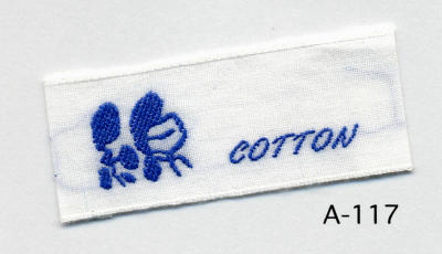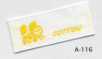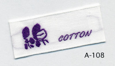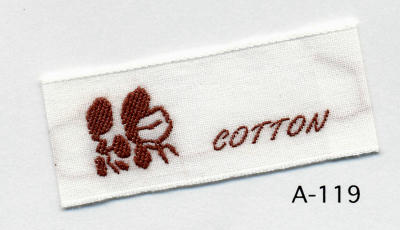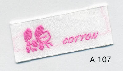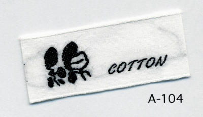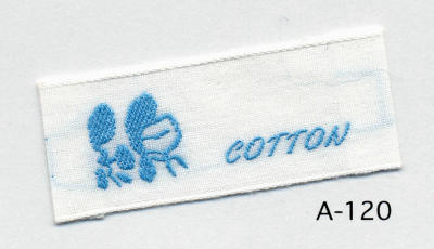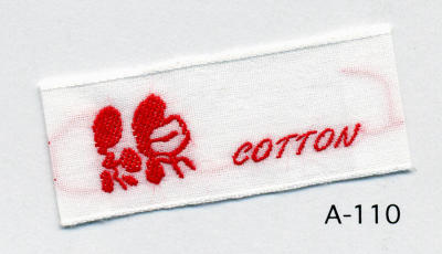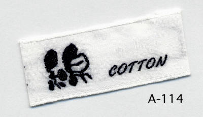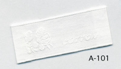 白ベースのシンプルな綿織ネームタグです。 文字柄の糸には長繊維の綿コーマ糸を使用。(織巾 18mm)
