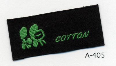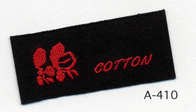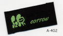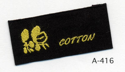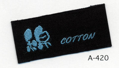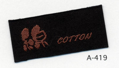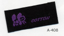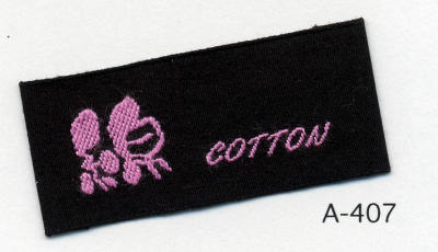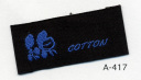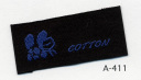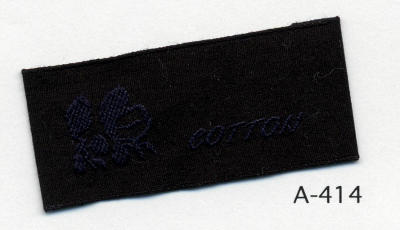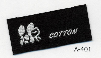 黒ベースのシンプルな綿織ネームタグです。 文字柄の糸には長繊維の綿コーマ糸を使用。(織巾 18mm)