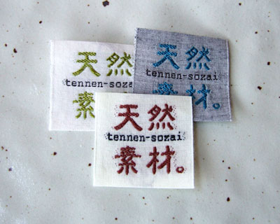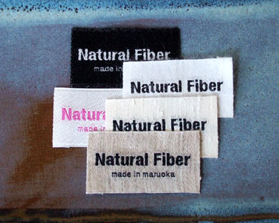 タテ糸に綿をヨコ糸には竹、豆、絹などの天然繊維を使用した織ネームタグです。