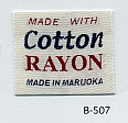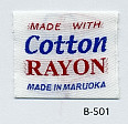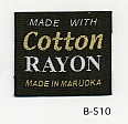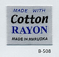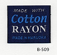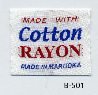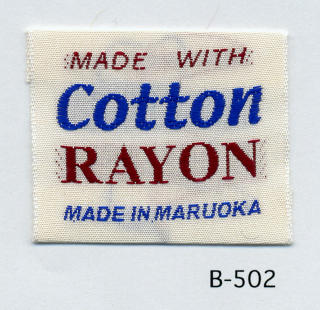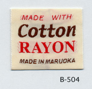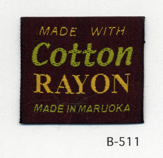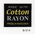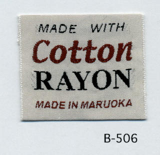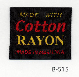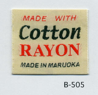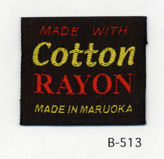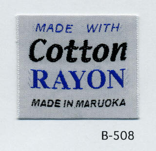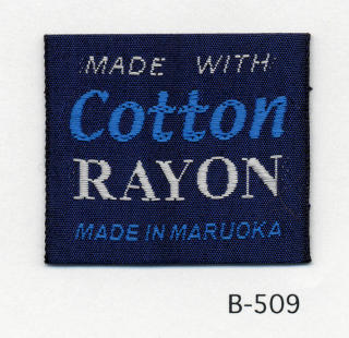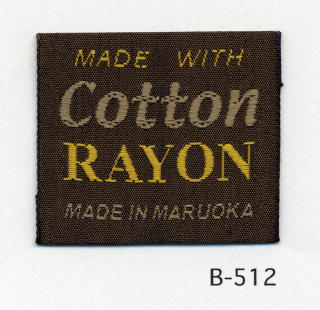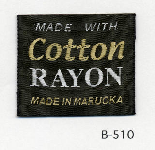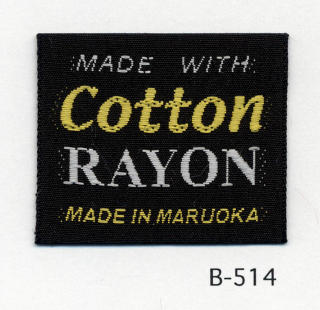 明るい平織りとシックな平織りベースの綿レーヨンネームタグ サンプルではベースヨコ糸に艶を抑えたレーヨンを、文字柄には光沢のあるレーヨンを組み合わせました。(織巾 35mm)