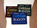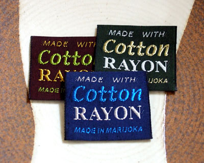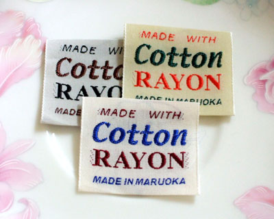 タテ糸に綿をヨコ糸にはレーヨン(人絹)を使用した、綿×レーヨンの織ネームタグです。
