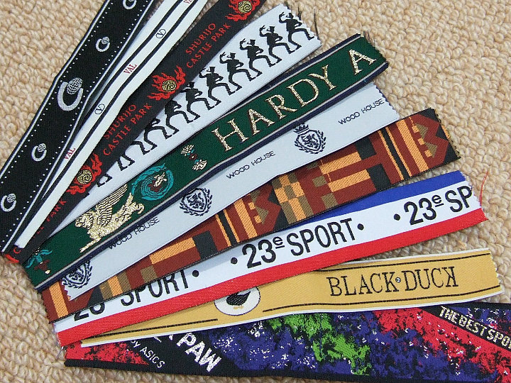 織テープは、スポーツウェアーや、鞄、帽子の飾りやアクセントとして、多く使用されています。小ロット、短納期にも十分対応しながら、織物ならではの風合いとファッション性でスポーツウェアーからグッズ関係まで生活のなかでよく目にすることができます。