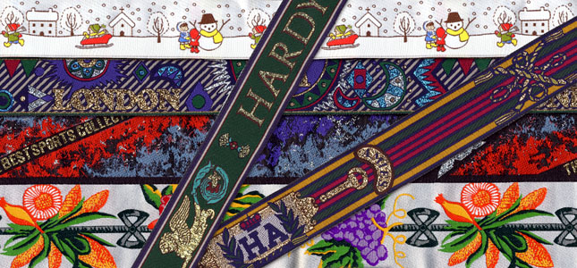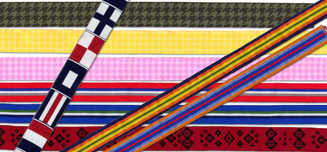 織テープは、スポーツウェアーや、鞄、帽子の飾りやアクセントとして、多く使用されています。小ロット、短納期にも十分対応しながら、織物ならではの風合いとファッション性でスポーツウェアーからグッズ関係まで生活のなかでよく目にすることができます。